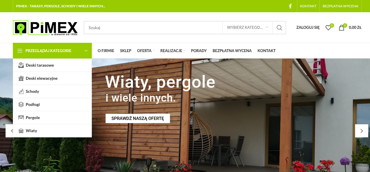 Pimex – deski tarasowe, schody drewniane, pergole, parkiety, drzwi